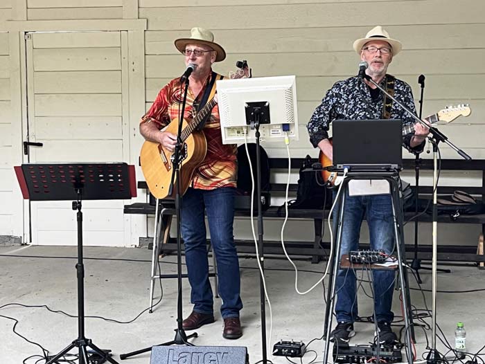 Dessa båda herrar sjöng och spelade en trevlig blandning av diverse svensktoppslåtar blandat med lite Elvis och annat från det stora landet i väster. Låten ”It never rains in southern California blev en uppmaning till solen att titta fram igen, vilket den också gjorde efter ett tag.