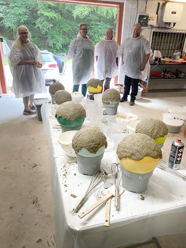 Ett litet tips till en sammankomst på hemmaplan efter att ha gått en kurs; En säck betong, visp och bunke, Ballonger och krukor, handskar och skyddskläder och sedan är det bara att tillverka Drakägg!
