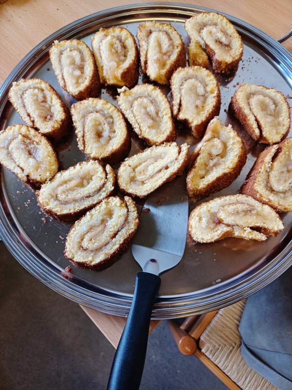 Solveig hade valt att göra rulltårta med egengjord äppelmos.