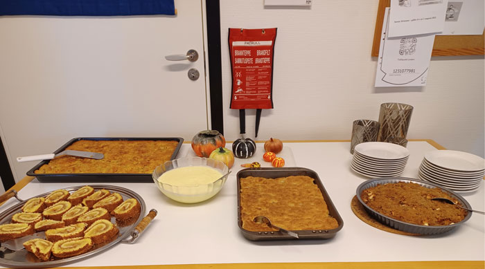 Tre från Arbetsgruppen ställde upp med bakning av olika sorters äppelkakor, det var Monica, Solveig och Jeanette, hon gjorde två olika, så man hade fyra sorter att välja mellan. Till dessa godsaker kunde den som ville ta vaniljsås till.