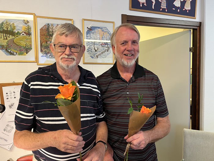 Nu kan det passa med lite musik, dragspel och elgitarr tror jag att de var. Med en bra underhållning med många kända melodier och med lite mellansnack mellan låtarna så nostalgin den flödade hos lyssnarna. Så lite allsångs refränger blev det, roligt när pensionärerna vill sjunga med i refrängerna och vara med på ett hörn. Duon avtackades med både blommor och applåder. Höstens första musikarrangemang är avklarat, de kommer mera.