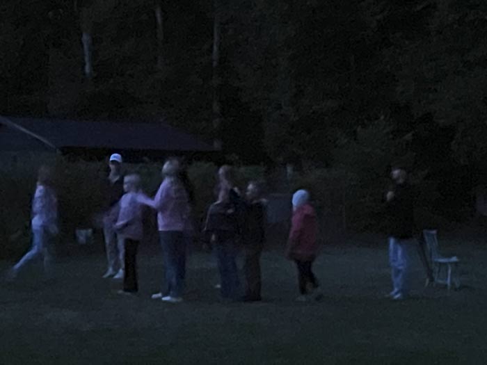 Det började mörkna, och då bestämde sig barnen för att leka en kurragömmalek! Kul med egna initiativ!