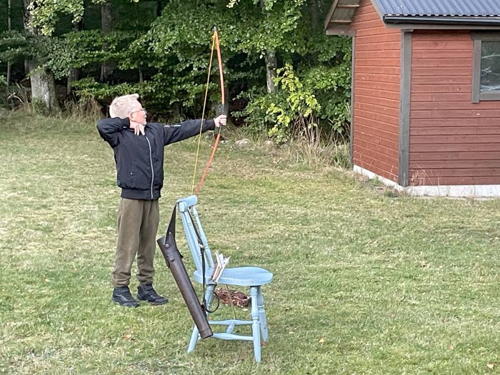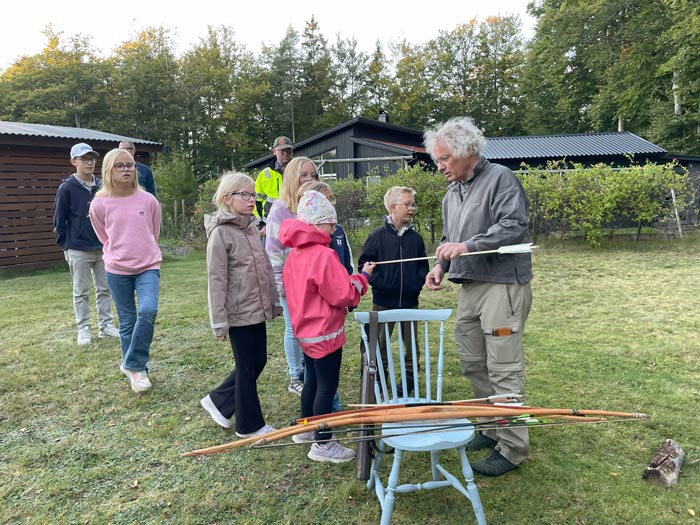Johan Forssblad hade tagit med sig flera olika bågar, bl a en från Afrika. Han visade olika pilar och vad man ska tänka på när man spänner bågen, och hur man ska lägga pilen. Barnen stod ivriga i kö för att få prova på, och de blev alla efter ett tag riktigt duktiga på att träffa tavlan.