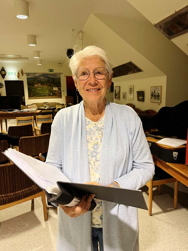 En av Kerstins absoluta favoriter är sången ”Vid Bjärlångens grönskande stränder” som är skriven av Gunnar Germundsson, en före detta lärare i Bjärnum. Det är så roligt att sjunga tillsammans, intygar hon entusiastisk!