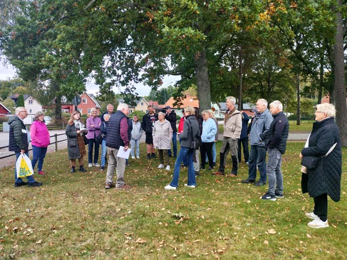 BJÄRNUM. Denna soliga söndagseftermiddag anordnade Bjärnums Hantverks- och Byaförening en historisk rundvandring genom samhället som benämndes som ”walk and talk”. Detta innebar att de som deltog i vandringen skulle berätta för varandra vad de visste om Bjärnum. Ett 30-tal personer samlades på torget framför ICA och gick sedan tillsammans med Helen Stalin Åkesson och Jessica Nilsson från Regionmuseet Skåne i Kristianstad genom byn. Det blev en omfattande runda där flera av dem som var med hade mycket att berätta om Bjärnums glansdagar på 60- 70- och 80-talet.