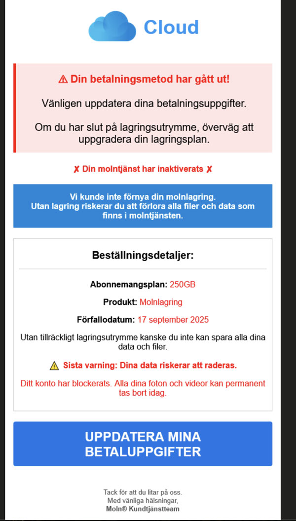 Tänk på att Myndigheter ALDRIG kontaktar dig via telefon eller mail.