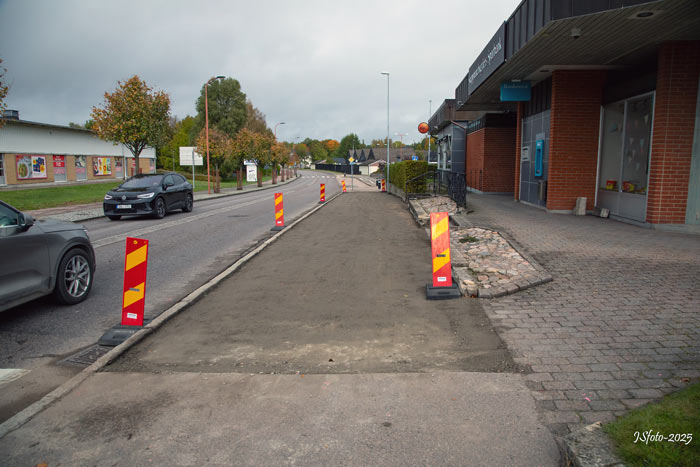 Där finns visserligen gott om plats, men det blir allt lite mer omständligt. Varför parkeringsfickan tagits bort går bara att spekulera om. Kanske skedde det olyckstillbud när någon körde ut från parkeringsfickan utan att se sig för? Väg 117 är ju starkt trafikerad med många tunga fordon och strax intill fickan ligger en korsning, så detta kan vara ett sätt att få bort ett problem. Bankomaten finns dock kvar som innan.