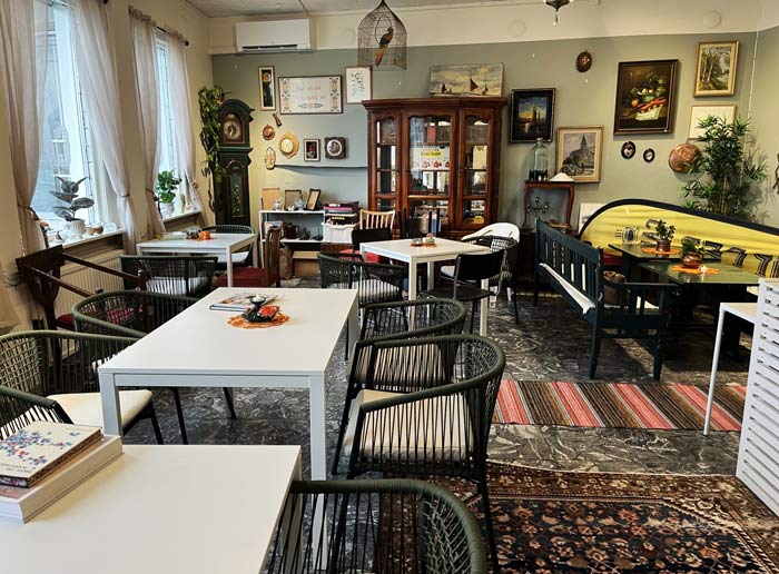 Strax intill ligger ett café till som hör ihop med loppisaffären Diana och Du. Det har nu Gunnar Dahre, som förlorade hela sin loppisverksamhet när hans affär i Hässleholm brann ner, tagit över sen i september. Här finns goda smörgåsar och kakor att köpa, samt kaffe och te. Det är också tillåtet att ta med sig sin hund till caféet som har öppet torsdagar och fredagar klockan 12 -17, samt lördagar och söndagar klockan 11-16.