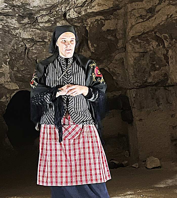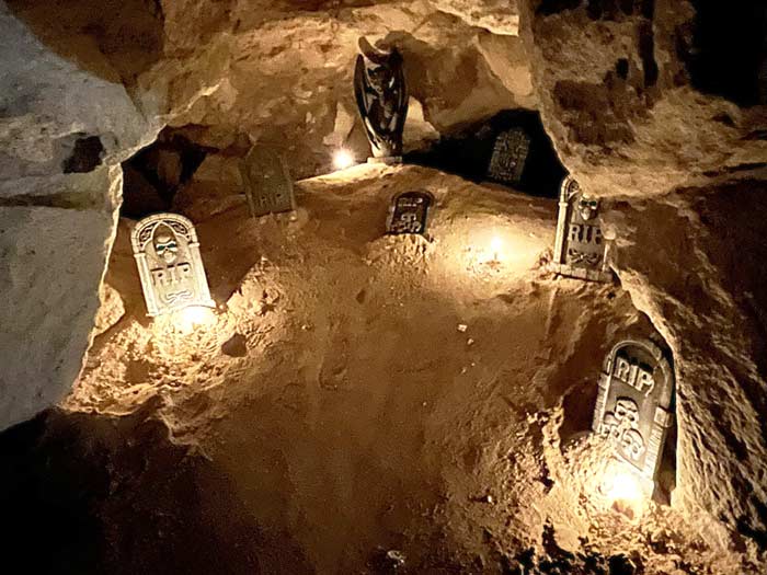 Grottan hade smyckats med olika slags inredningar som hör Halloween till och de som uppträdde passade bra in i detta tema. Alla berättade de sin historia.