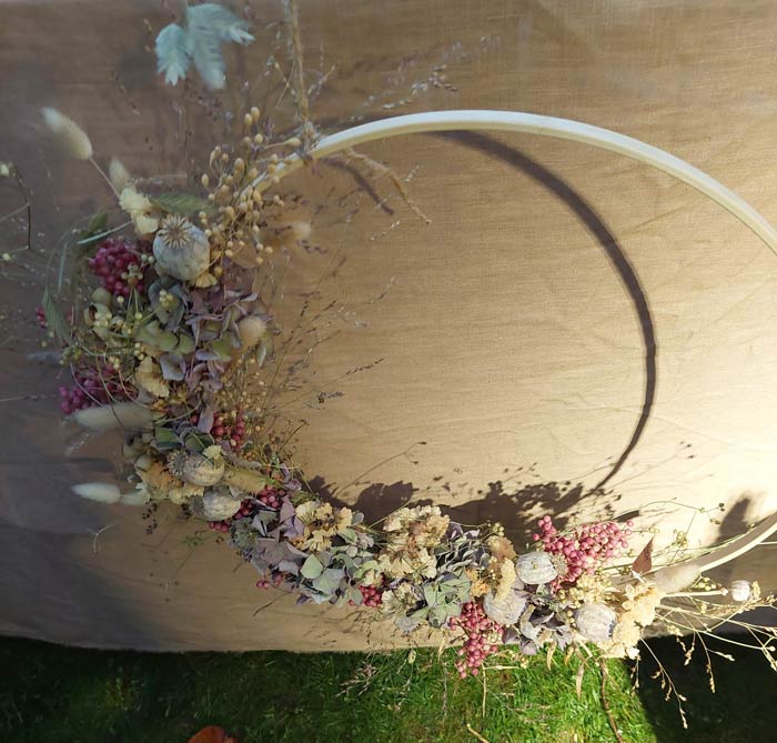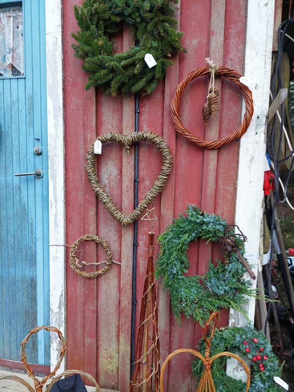 Änglar i plåt, vackra blomsterkransar, dörrdekorationer, korv, sill och ål.
