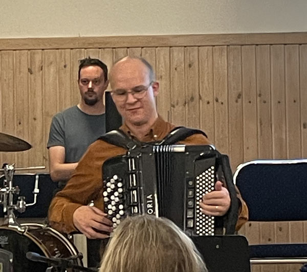 Just denna kväll hade gruppen förstärkts med ytterligare en skicklig musikant: Mattias Lundgren på dragspel.