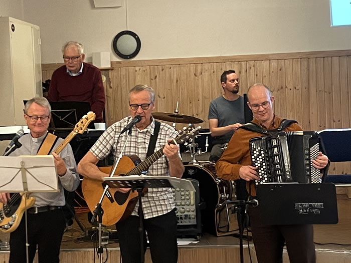 Här blev det också allsång som ackompanjerades av Farstorps All Stars: Anders Lennartsson, akustisk gitarr, Mats Svensson, elgitarr, ”Curre” Nilsson, elpiano, Katarina Tågerud, fiol, Jonas Lennartsson, trummor.