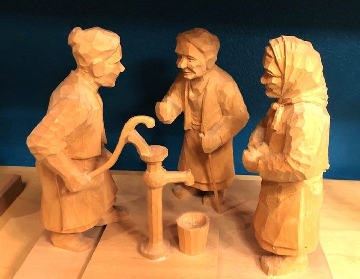 Trä är ett material som också användes flitigt av Alte Nilsson (1920 – 2004). Han jobbade som målare och bonare, det vill säga lackerare och polerare inom snickeribranschen, men på fritiden målade han tavlor och täljde ett stort antal trägubbar. Dessa finns att beskåda på museet dit han senare skänkte hela sin samling. Han hade ingen TV och heller ingen fru, så det fanns gott om tid för honom att sysselsätta sig med denna hobby. Vardagliga situationer var det som inspirerade honom när det gällde hans konstnärskap.