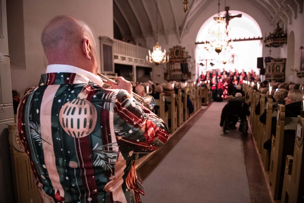 Utanför kyrkan låg snön och kylan var bitande med minusgrader ner mot tolv grader. Inne i den helt fullsatta kyrkan spred sig värmen inte bara från den stora publiken utan också från den underbara konsert som gavs. Ett tydligt tema och en röd tråd för året var ”vänlighet”. Även publiken hade tagit fasta på temat, några hade tyvärr insjuknat men skickat med sin biljett som gratis nu togs över av någon i kön.