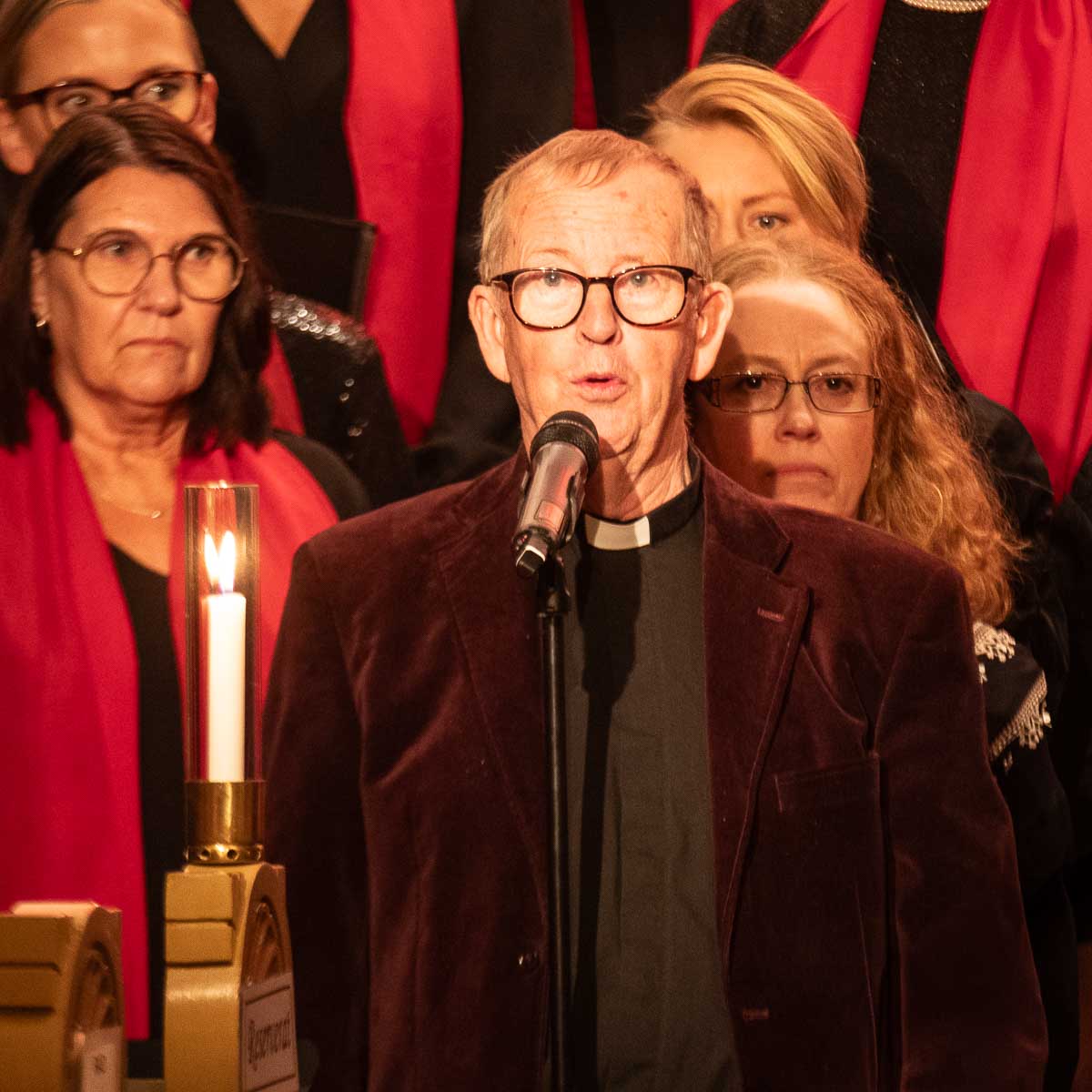 Kyrkoherde Krister Frostensson höll en kort andakt kopplad till julen. Han berörde våra förväntningar men tryckte även på vikten av att våga samtala med andra som vi kanske inte känner, inte minst i dag, i den värld vi lever i med krig nära oss.