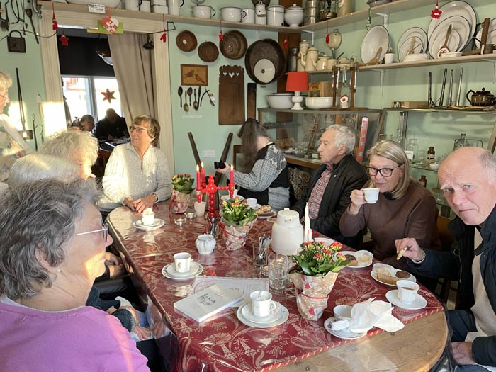 Vad vore hembygdsföreningen utan frivilliga som alltid ställer upp. Vi blev bjudna på het glögg och pepparkakor, smakade ljuvligt. Det fanns även försäljning av årsskrifter och av gamla vykort. Detta var årets julstuga som arrangerades av Vittsjö hembygdsförening.