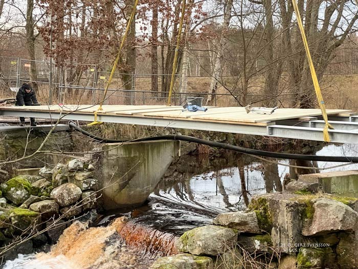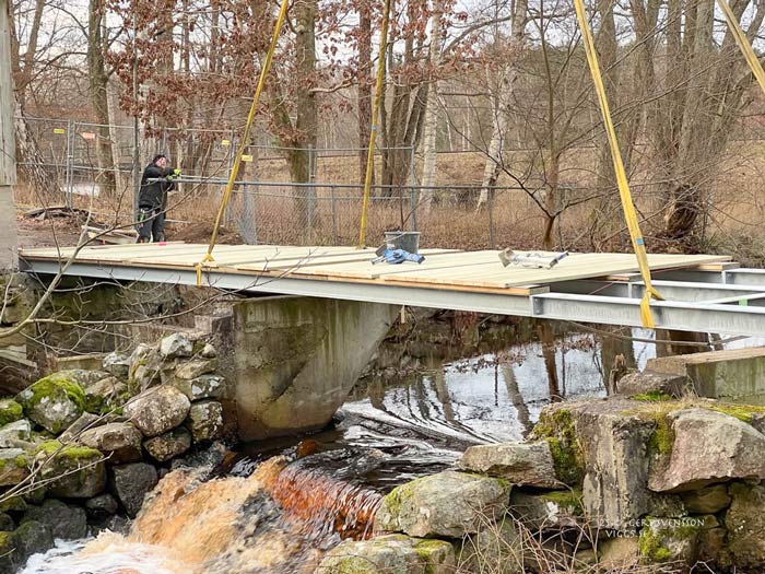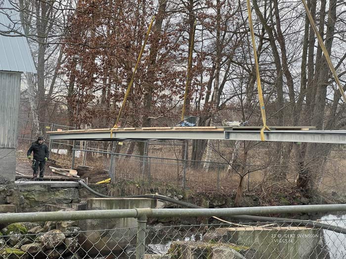 VITTSJÖ. Gångbron över ån vid den gamla sågen har varit avstängd sedan våren. För ett tag sedan började det att hända något, den gamla bron togs bort och ett nytt brofäste har gjorts. Nu har även den nya bron kommit på plats.