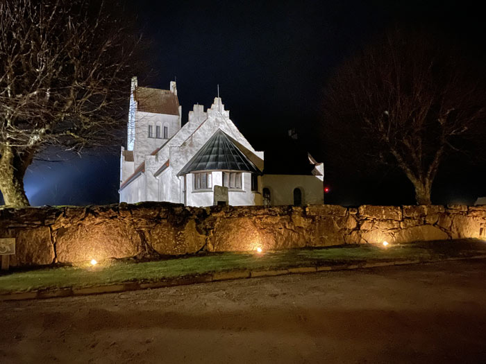 VERUM. Vägen upp till kyrkan var kantad av marschaller, en del tyvärr släckta av blåsten.