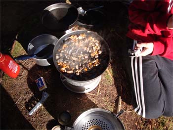 Vi bjöd in Allan Nyberg och Åke Jönsson, Allan var med på svampstationen och Åke på vattenstationen. Dagen var mycket lyckad. Vi hade fint väder och alla eleverna var mycket positiva i sin utvärdering efter åt.Allans uppgift under dagen bestod i att han skulle lära eleverna lite om svamp. Hans station var vid stora tallen där elljusspåret delar sig. Där skulle också Bosse Lohmin, som är klassmorfar några dagar i veckan, hålla till och steka svamp på ett par trangiakök så att alla eleverna skulle få en svampmacka. Det var blandsvamp av Karl Johan, Tegelsopp (Tegelröd björksopp) och gula kantareller berättade Bosse.