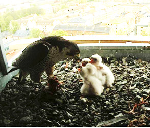 Pilgrimsfalken häckar sedan 2010 i en bolåda på toppen av vattentornet i Kristianstad. Från i år kan man följa pilgrimsfalkens liv online via en webbkamera i bolådan. Klicka här