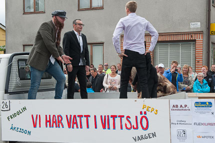 Därför blev det lite svårt att bedöma hur mycket människor som tagit sig till Bjärnum denna lördag. Troligen var det dock nytt publikrekord i år. En bidragande anledning kan vara den lite oväntade draghjälp arrangörerna fick från Svenska Spel. De hade ju som reklam i Tv att man borde ändra tidpunkt för karnevalståget med hänsyn till fotbollsspel.