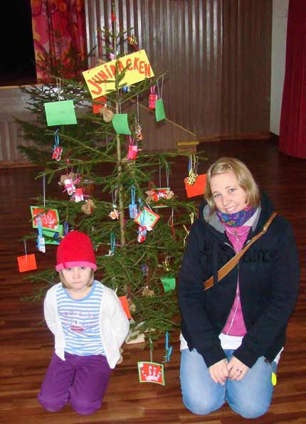 Varje grupp hade fått slantar för att vid behov inhandla lämpliga prydnader till granarna. Slantarna hade i de flesta fall sparats till något annat trevligt i verksamheten. De flesta prydnader hade tillverkats i förskolans ”verkstad” och kom upp i granarna med skolans personal som handledare.