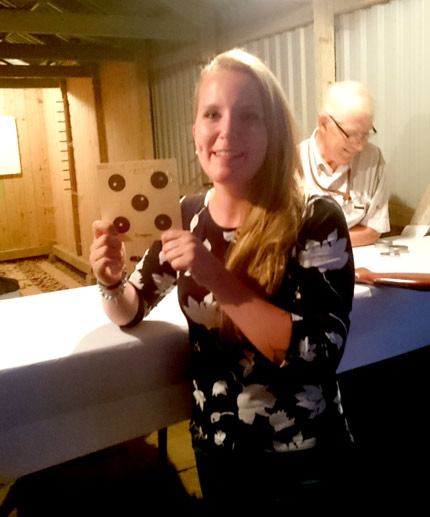 Bild av skjutbanan, Sofia skjuter, pappa Sven står på tur.