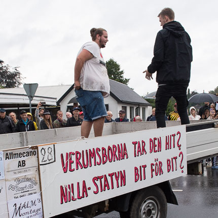 Naturligtvis fanns de tre nu välbekanta ”äldre damerna” med sina fickpluntor på plats. Karnevalsdrottning saknades i år.I karnevalståget fanns det mesta, Eskil Erlandsson ”dras åt höger” fanns på en vagn, på en annan fick kommunen en ”känga” för sina egendomliga besparingar, på en tredje gjordes reklam för ”åsneexpressen” som beskrevs som ett säkrare alternativ än ersättningsbussar, för att nämna något av det som fanns med i årets karnevalståge.