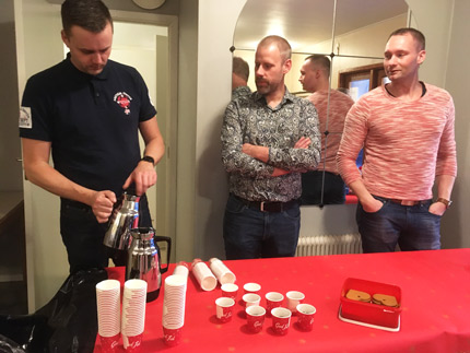 Då dansades det kring granen av stora och små och efter förtäring blev det dans för de vuxna, men så var det inte nu! I entrén mötte oss Mattias, Johnny och Richard, som bjöd på glögg och pepparkaka, salen fylldes snabbt av förväntansfulla besökare, föräldrar och barn. Under tiden underhöll ”Bygdespelarna” med julmusik.