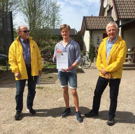 Lions representanter Nils Hansen och Anders Larsson flankerar stipendiaten Amadeus Stjernfelt