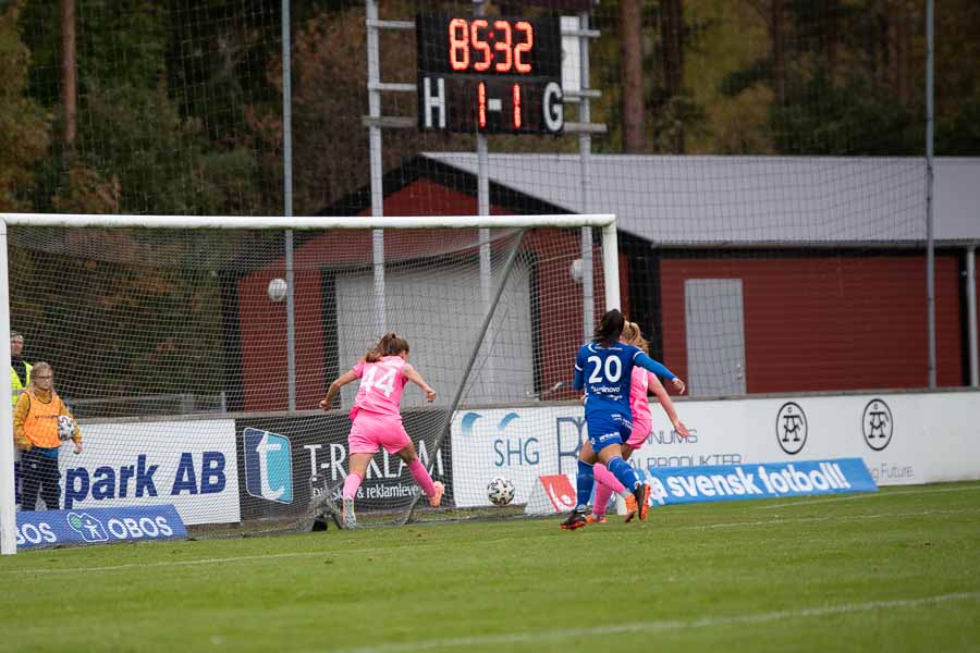 I den 54 minuten kom genom Mie Leth Jans det efterlängtade reduceringsmålet. Detta efter assist från Ebba Wieder. Halvleken fortsatte med ett Rosengård som spelförande men som samtidigt inte lyckades komma förbi Vittsjös starka och uppoffrande försvarsspel. I den 67 minuten råkar Mie Leth Jans i eget målområde ut för en otäck skada. Minuten senare ersätts hon av Paulina Nyström. Poängjagande Rosengård gör flera byten men lyckas inte komma förbi en storspelande Anke Preuss i Vittsjömålet och ett synnerligen starkt Vittsjöförsvar. När domare Sandra Almkvist efter fem minuters tilläggstid blåser av matchen står det oavgjort 1-1 på tavlan.
