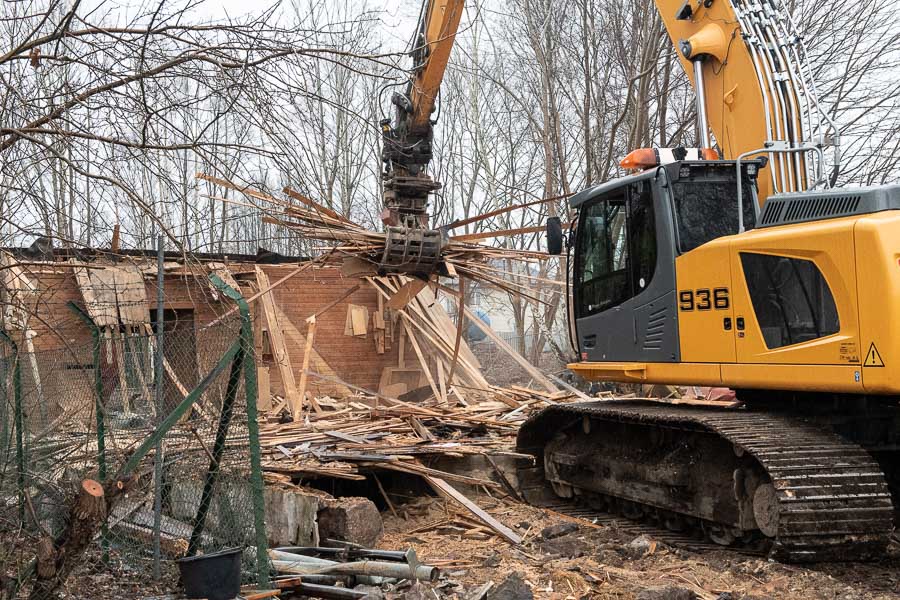 Att riva en så gammal byggnad är med dagens restriktioner inte helt lätt. En hel del eternit, -asbest fanns framförallt i taket. Detta har medfört strikta restriktioner för de som deltagit i rivningen av byggnaden. Sortering av allt material är regler som gäller i dag.