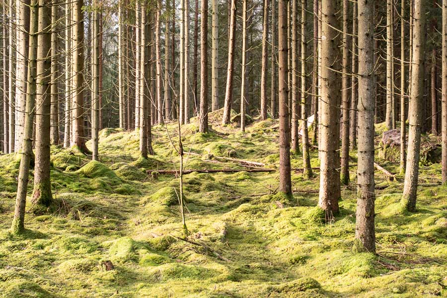 Efter en stunds vandring tittar solen fram och skapar en nästan sagolik bild, träden, mossan på marken och den svaga dimman från frosten som sakta tinas upp av solen. -Så, vackert.