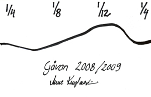 Jag är nyfiken på hur företaget står sig i lågkonjunkturen och ber Anne rita en kurva över utvecklingen för året som gått.