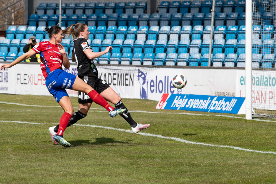 Emily Gielniks boll på väg in bakom Guro Pettersen i Piteåmålet