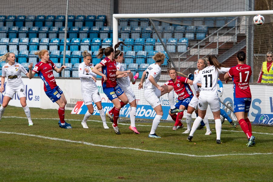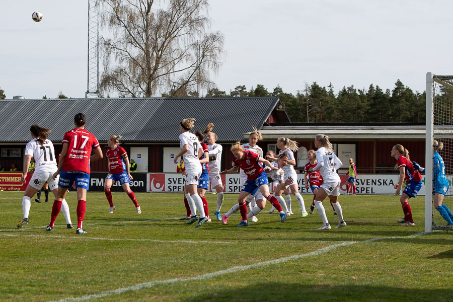 Matchen startade oroväckande för Vittsjö genom att Stina Blackstenius redan i den 4:e minuten ger gästerna ledningen. Detta efter vad uppfattas som ett inlägg som går rakt in i bortre krysset, helt otagbart för Sabrina D’ Angelo. Troligen var bollen redan ”död”, varför detta mål får tecknas som en domarmiss. Vittsjölaget lät sig inte nedslås av gästernas tidiga mål. I den 24 minuten kom även kvitteringen. Efter en frispark från höger fanns Mie Leth Jans framme i målgården och satte 1-1 efter ett tveksamt ingripande av Jennifer Falk i Göteborgsmålet. I den 44 minuten var Mie Leth Jans mycket nära att bli tvåmålsskytt. Lagen gick till vila med det oavgjorda resultatet på tavlan.