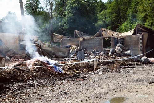 Bernols gamla färgfabrik har hemsökts av den röde Hanen en åskkväll i aug-21
