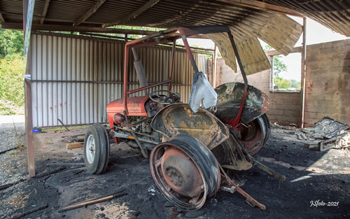 I garaget blev en traktor helt förstörd men en hjullastare hann man rädda från lågorna