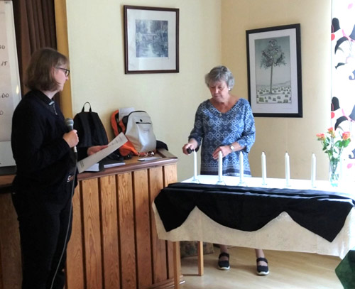 Parentation. Prästen Ullrika Jäderland läste namnen på de avlidna medan Ingrid Magnusson tände ljusen.