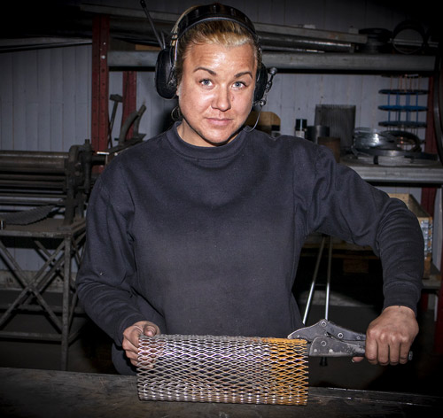 Bjärnum har en lång historia av tillverkningsindustri. Det mesta var förr möbeltillverkning. Inte så mycket av detta är nu kvar och då är det trevligt att stöta på en ung tjej som är beredd att slita med tungt stål och samtidigt tillverka vackra detaljer till prydnad för varje hem.