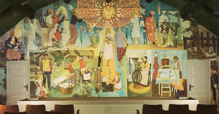 - En kulturgärning invigdes i församlingshemmet 1970. Det var David Ralsgårds fondmålning där han skildrat det kulturella arvet i bygden. En bild säger ofta mer än väloljade fraser utan innehåll!