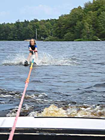 Till att leda den här introduktionen och undervisningen i vattenskidåkandets ädla och svåra konst fanns Dina Gutrad, Tomas Jensen och Ricki Larsson. Jag hade också nöjet att få sitta med i båten och åse dessa entusiastiska ungdomar, som, efter viss grundutbildning, lyckades följa båten i 28-30 kilometers fart och på sina skidor svänga och accelerera allteftersom centrifugalkraften påbjuder. Det var mycket imponerande. Någon enstaka föll men alla var helhjärtat övertygade om sin egen förmåga och vilja att försöka igen. Ett väl utfört jobb av ledarna således.