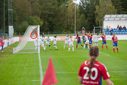 Ebba Hed sken naturligtvis som en sol vid presskonferensen. Inte undra på detta, hon gör två viktiga mål i matchen och dessutom är dessa hennes premiärmål i damallsvenskan. Ebba har nu visat hon kan spela på i stort sett samtliga positioner i laget. Ebba menade att hon trivs bäst som forward.