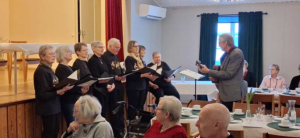 Avgående styrelsemedlemmar avtackades och kören sjöng ytterligare flera fina visor.